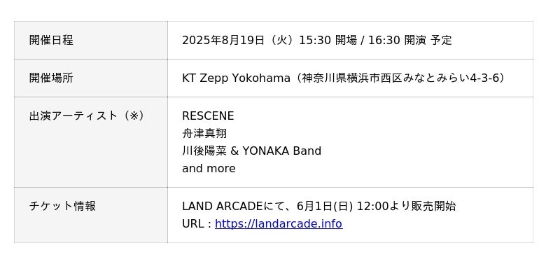 今回の「LANDCON ANNEX」は、そのスピンオフとして“超SUMMER”の名にふさわしい熱量で横浜に上陸します。