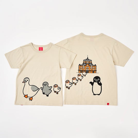 JR東日本の人気キャラクター「Suicaのペンギン」と、「楽しくないTシャツなんて、欲しくない。」がテーマの人気Tシャツブランド「OJICO(オジコ)」がコラボレーションした新作Tシャツが登場。カルガモの親子と子ペンギンが東京駅のシンボル「丸の内駅舎」からお出かけする様子が、フロントからバックへと続くOJICOならではの“繋がるデザイン”で描かれています。大人サイズから子供サイズまでの展開で、親子でのリンクコーデもおすすめ。「オレンジページ」によるモチーフをもとにOJICOが手掛けたユニークなTシャツが、夏のお出かけやレジャーを楽しく演出します。