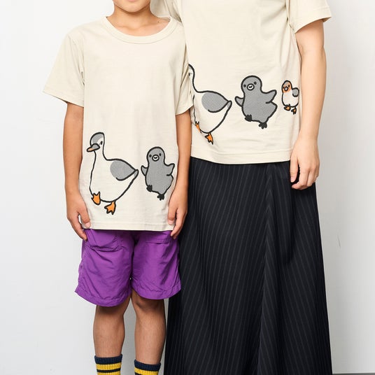 カルガモの親子と子ペンギンが東京駅のシンボル「丸の内駅舎」からお出かけする様子が、フロントからバックへと続くOJICOならではの“繋がるデザイン”で描かれています。大人サイズから子供サイズまでの展開で、親子でのリンクコーデもおすすめ。「オレンジページ」によるモチーフをもとにOJICOが手掛けたユニークなTシャツが、夏のお出かけやレジャーを楽しく演出します。