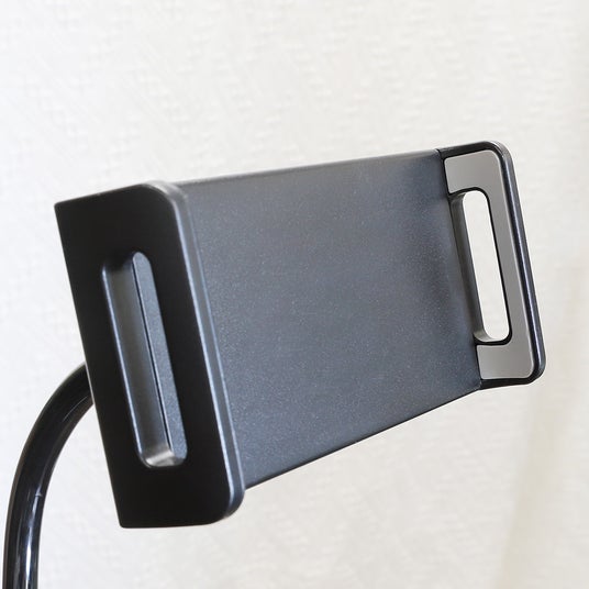 アームが最長約50cmと短めなので、スマートフォンなどが手元の近くで操作できます。また、アーム部分は硬めに設計されているため、タブレットをセットした場合もしっかりと支えます。