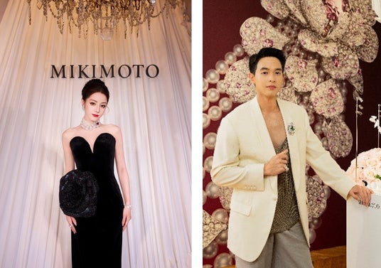 ミキモトグローバルブランドアンバサダーのディリラバさん、ミキモトとパートナーシップを結ぶジェームス・ジラユさんも来場しました。ディリラバさんは、「Les Petales」のルベライトが鮮烈な色彩を放つバラのネックレスを纏った姿で登場。ジェームス・ジラユさんは、バラの花びらの優雅で躍動的なフォルムを巧みに表現したブローチを着用した洗練されたスタイリングを披露しました。