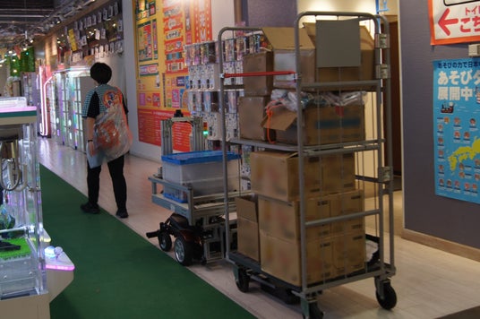 Thouzerは長年の課題である店舗内物流の効率化を進めるための担い手として導入が決定致しました。具体的にはクレーンゲーム用景品の倉庫から店舗への運搬や閉店後のメダルや100円硬貨の運搬・回収に役立てられ、特に硬貨回収は数百台のゲーム機に対してスタッフが低い姿勢での作業が必要であることから体力的負担が大きい業務となっております。弊社はその課題に対してThouzerは操作性がシンプルで使いやすく、既存のかご台車も牽引オプションにて継続活用できる等の提案を実施致しました。