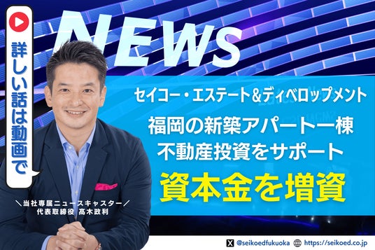 福岡を拠点に不動産投資支援や建築事業を手掛ける株式会社セイコー・エステート&ディベロップメント(代表取締役:高木政利)は、2025年6月30日付で利益剰余金の一部を活用し、資本金を600万円から1000万円に増資しました。堅実な利益体質を背景に、より強固な財務基盤を築き、不動産投資を検討するお客様にさらなる安心を提供してまいります。