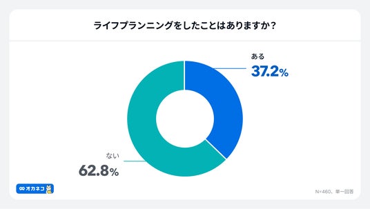 ライフプランニングの実施経験について聞いたところ、「(実施したことが)ある」37.2%、「(実施したことが)ない」62.8%となりました。