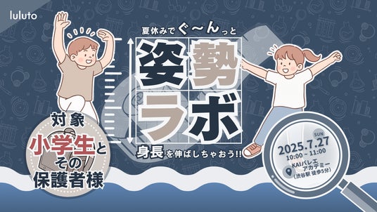 本イベントは、スマートフォンやタブレットの長時間使用による子どもたちの姿勢悪化に着目し、親子で楽しみながら姿勢の大切さを学べる体験型プログラムです。夏休みの自由研究にも活用できる内容で、参加費は無料。事前申込制・先着順での受付となっております。