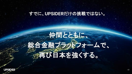当社は、『成長企業を支援する法人カード「UPSIDER」を提供する会社』から、『世界で戦える日本企業を生み出し、日本の競争力を再び上げることを支援する、AI化された総合金融機関』へと進化してまいります。