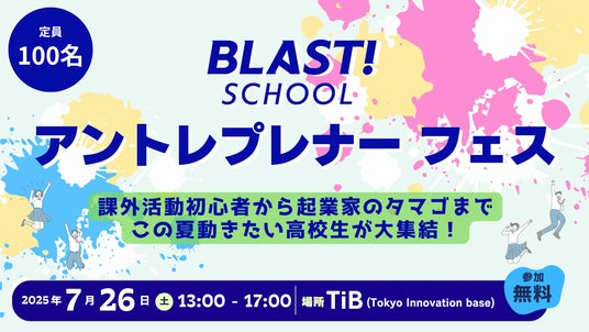 2025年7月26日(土)、高校生向け起業家育成プログラムを展開する一般社団法人留学エール(以下 BLAST! SCHOOL)は、課外活動や起業に挑戦したい高校生のための夏の特別イベント「アントレプレナーフェス~課外活動初心者から起業家のタマゴまで この夏動きたい高校生が大集結!~」をTiB(Tokyo Innovation Base)にて開催します。