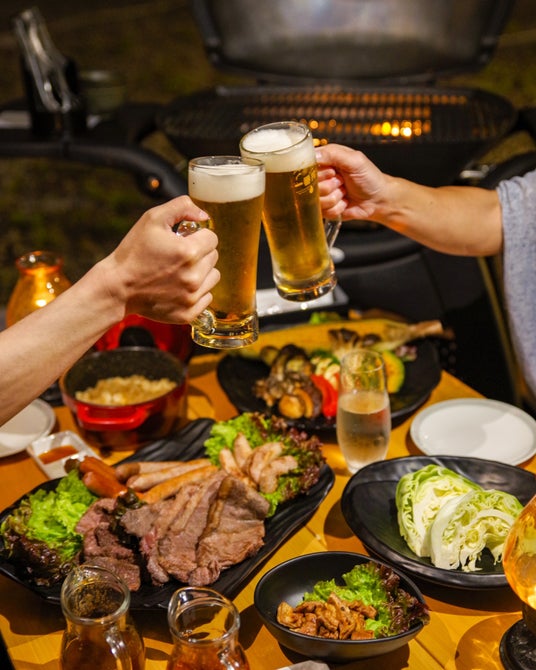 8月の最高気温の平均が23℃程(2024年8月:ホテル調べ)と真夏でも高地ならではの涼を感じることができる万座温泉。黄昏時から始めるバーベキューは、ファミリーやグループでワイワイにぎやかにグリルを囲み、会話の弾む楽しい夕食のひと時をお楽しみいただけます。バーベキューで活躍したいお父さんにはホテル特注エプロンを貸し出します。エプロンを身に纏いバーベキューを仕切るお父さんの姿は、まさに我が家のヒーローといっても過言ではありません。食後には日本有数の硫黄含有量を誇る万座の湯でホッと一息。夏の星空のもとの露天風呂入浴は心に刻まれる語らいの時間としてお楽しみいただけます。※7月中にご予約いただいたお客さまにはチキンウィング(手羽先焼き)をプレゼント!