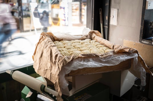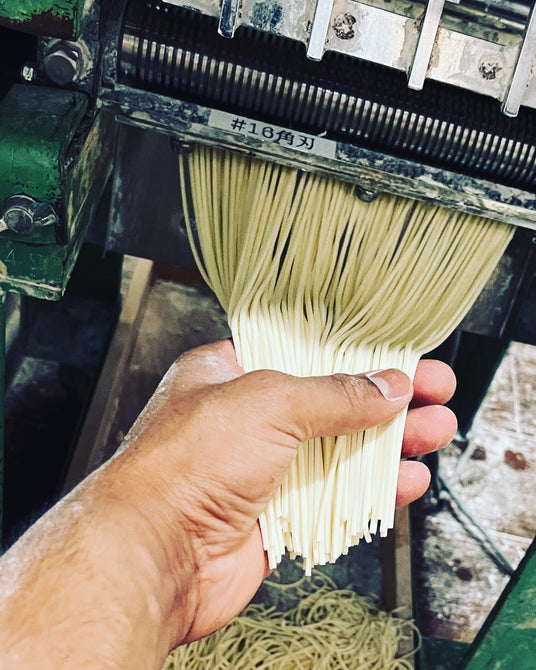 毎日、店舗で製麺している自家製麺は三ツ矢堂製麺のブランドの柱です。