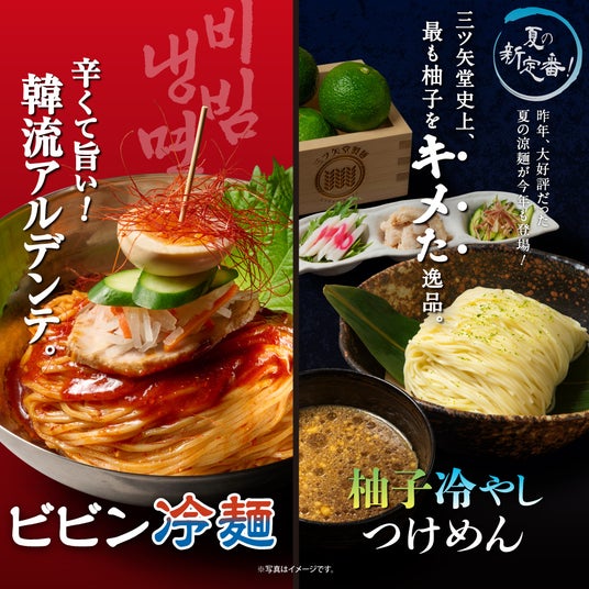 キンキンに冷えたコリコリ冷麺食感の『ビビン冷麺』と爽快な柚子の香りの極致『柚子冷やしつけめん』が期間限定販売で登場
