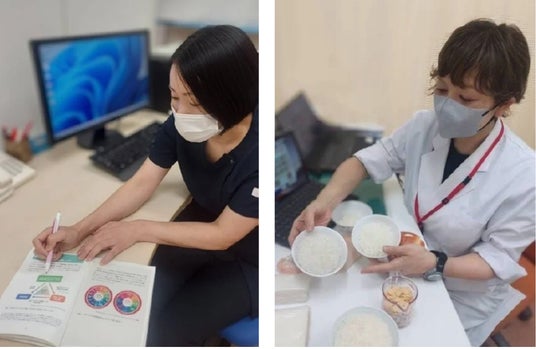 浜田病院 診察風景(中村医師) 浜田病院 栄養指導風景(市川管理栄養士)