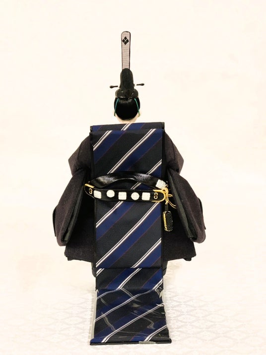 男雛の背面や女雛の小物部分には、ネクタイ生地を使用し、統一感ある仕上がりに。