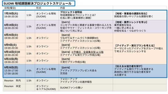 今回のプロジェクト期間は8月19日~9月27日の約1ケ月半で、約5回のオンラインミーティングと松江市SUOMI現地での最終発表会を予定しています。