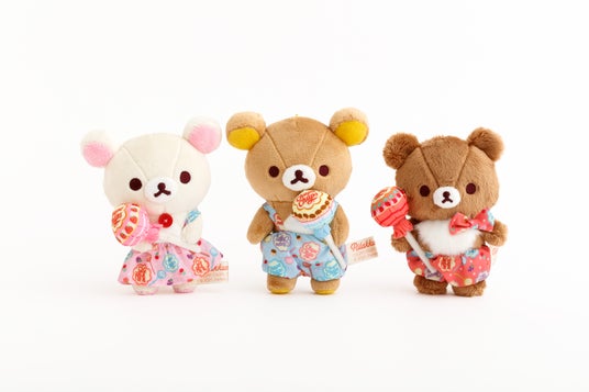 リラックマ、コリラックマ、チャイロイコグマがそれぞれロリポップを持っている“ぶらさげぬいぐるみ”や、リラックマとコリラックマ自体がロリポップになりきっているみたいな“ぬいぐるみ”など、ロリポップのように甘くてかわいいスペシャルデザインのコラボアイテムが登場します。