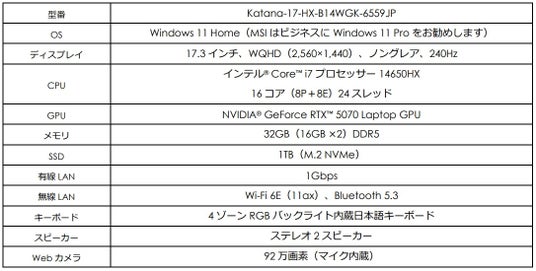 ・Katana 17 HX B14Wシリーズ製品ページ:https://jp.msi.com/Laptop/Katana-17-HX-B14WX