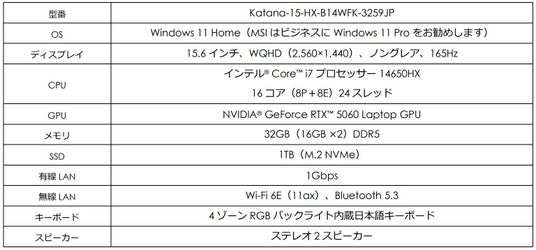 ・Katana 15 HX B14Wシリーズ製品ページ:https://jp.msi.com/Laptop/Katana-15-HX-B14WX