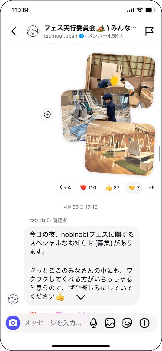といった背景から、「フェス実行委員会」という形でつむぱぱInstagramフォロワー4,000名以上とのグループチャットを形成。