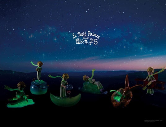 『星の王子さま』からは、フィギュアの第5弾「星くずをまとって」(全6種)を展開します。すべてのフィギュアには起き上がり小法師などの小さな仕掛けやサプライズがあり、暗い場所では蓄えた光をほのかに放ちます。その光には、「努力を重ねる人の歩みを照らしたい」という想いが込められています。