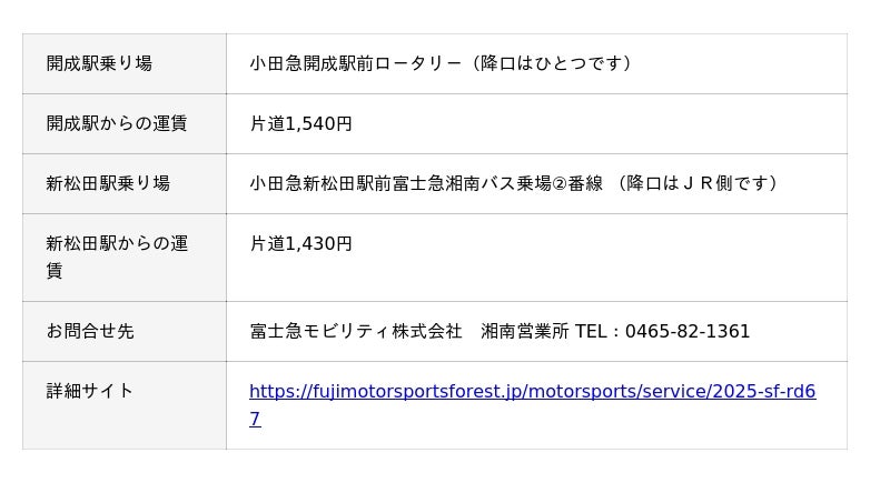 2. 小田急開成駅~小田急新松田駅~富士スピードウェイ場内イベント広場