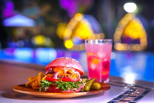 ホテルニューオータニ幕張のナイトプールに来たらぜひともご堪能いただきたいのが、昨年メディアで紹介され、若い女性を中心に話題を呼んだ「“ピンク×ピンク”のスマッシュチーズバーガー」。ビーツを練り込んだ鮮やかなピンク色のバンズに、ジューシーなパティを贅沢に2枚重ね、トマトやフリルレタスのシャキシャキ感、特製のピンクマヨネーズが絶妙にマッチ。 目にも楽しく、思わずかぶりつきたくなるような、とっておきの逸品でナイトプールの気分を盛り上げてくれます。