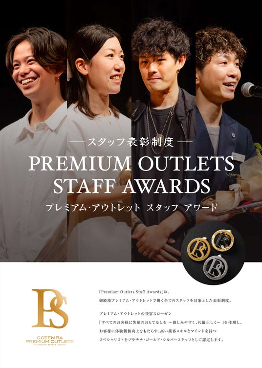 「Premium Outlets Staff Awards」は、従業員のモチベーションアップと更なる接客技術向上を目的に、プレミアム・アウトレットの接客スローガン「すべてのお客様に笑顔のおもてなしを~親しみやすく礼儀正しく~」を体現し、 お客様に「体験価値向上」をもたらす高い接客技術と意識を持つスタッフを認定する制度として昨年2024年4月よりプレミアム・アウトレットとして初めて導入しました。