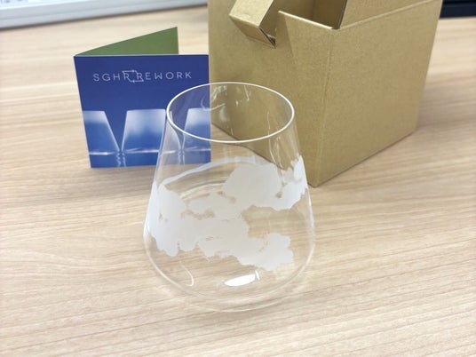 また、25年を区切りとするES向上の取り組みとして、施設就業歴が15年以上のスタッフを対象に記念品を贈呈しました。長きに渡り、施設を支えてくれているスタッフへ、これまでの感謝とこれからの活躍を願い、日本のハンドメイドガラスブランドの「Sghr スガハラ」のグラスをご用意しました。