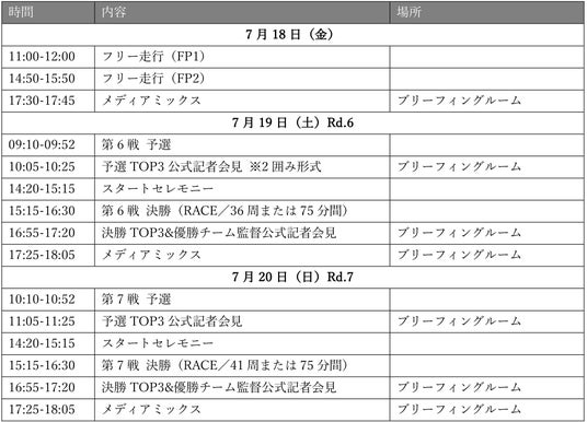 2025 SUPER FORMULA Rd.6-7 富⼠大会スケジュール(暫定)