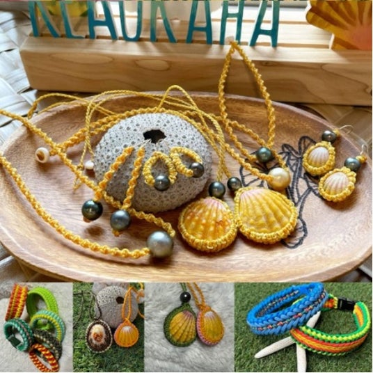 オピヒシェル、サンライズシェルを磨いてネックレスに。また紐を編んでタヒチアンパールチョーカーやブレスレットも作れます。パラコードを編んでわんちゃん向けの首輪作りも可能です。世界に1つだけの手作りアクセサリー作りを是非ご体験ください。