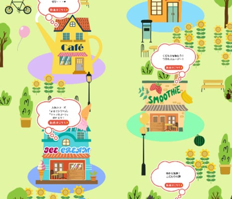 特設サイトでは、「THE TASTY TOWN(ザ・テイスティータウン)」と称した街を舞台に、スムージーやアイスなどジャンルごとにお店が並びます。各店では、セブン‐イレブン公式YouTubeチャンネルで配信中のコンテンツ「セブン‐イレブン おいしさ伝え隊」の動画を視聴できます。