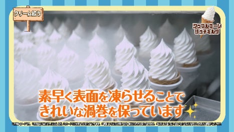 「おいしさのヒミツ」のポイントの説明は、短文で分かりやすく、キャラクターの吹き出しの一言などで表現。映像とともに一目で理解できるように工夫しています。
