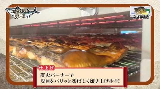 さばの調理では、均等に切り込みを入れ、火の通りが均一になるように調整。スチームを当てながらじっくり火を入れて身をふっくらやわらかく仕上げ、直火バーナーで皮目をパリッと香ばしく焼き上げる様子をお見せしています。