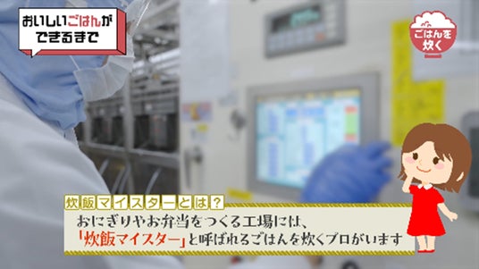おいしいごはんができるまでのこだわりを「お米」「精米」「ごはんを炊く」の3段階で紹介。各商品に合わせて銘柄や産地を選定し、段階的にやさしく精米したり、ごはんを炊くプロ「炊飯マイスター」が温度調整する様子などを伝えています。