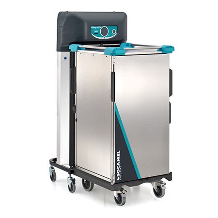 高齢者・福祉施設の人手不足の解消と業務の効率化、そしてサービスの向上に。新商品の再加熱ワゴン「マルチサーブ」を展示します。