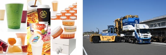 今回の実証では、JR貨物とT2で共同開発した、モーダルコンビネーションの際に貨物列車からT2のトラックへ直接載せ替えが可能となる31フィートタイプの共用コンテナを用い、東罐興業が取り扱っている紙容器およびプラスチック製容器を輸送します。