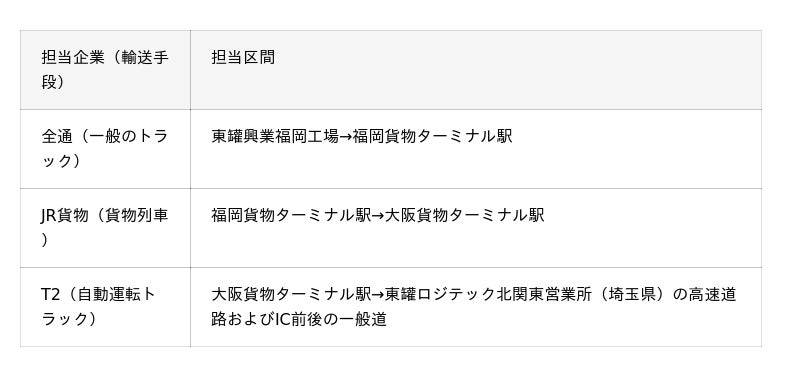 東罐ロジテック・全国通運・日本貨物鉄道・T2 自動運転トラックと貨物鉄道を組み合わせた「モーダルコンビネーション」 関東-九州間で初めての「往復」の実証を開始