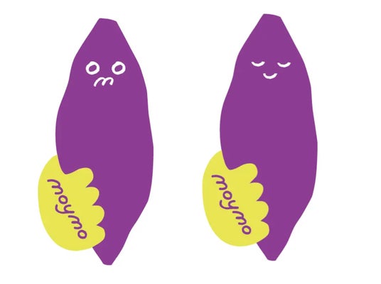 原料であるさつまいもをモチーフにしたキャラクターで、その正体は、忙しい日々をほんのり癒やしてくれるおいもの化身です。なぜだかギュッと抱きしめたくなるような愛嬌を漂わせています。旨辛ソースを頭につけて、愛嬌たっぷりのmoymoくんパッケージで、ギフトにもぴったりです。