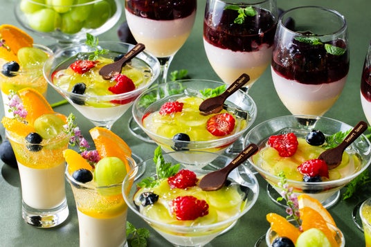 “果実の女王”と称されるシャインマスカットと、芳醇な香りと濃厚な甘みを誇るピオーネを贅沢に使用した、ぶどうスイーツの数々をご用意いたします。みずみずしく輝く果実を、ジュレやタルト、ムースなど多彩なスイーツに仕立てた、まるで宝石のようなひと皿ひと皿。くつろぎの夜にぴったりな華やかなスイーツブッフェを、心ゆくまでご堪能ください。