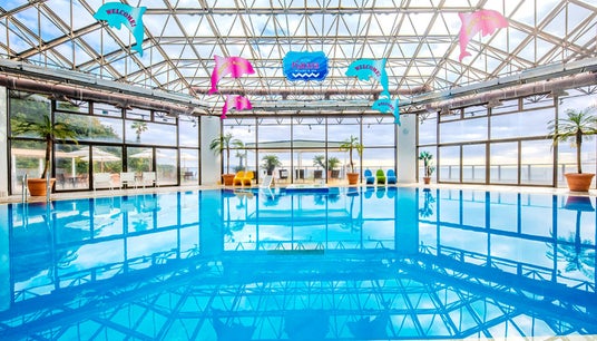 楽天トラベルが選ぶ全国プールが人気ホテルランキングで第5位に選出。全天候型プールは熱川温泉の源泉を利用しているので一年中通じて水温は約33度。お子様のプールデビューに最適のキッズ向けの水深50cmのコーナーを完備。利用はチェックイン前12:00~当日は21:00まで、翌朝はチェックアウト後12:00まで利用可