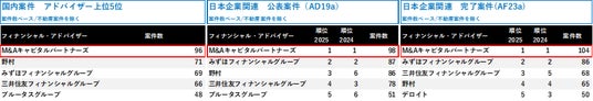 ・1位獲得「国内案件 アドバイザー上位5位 案件数ベース」