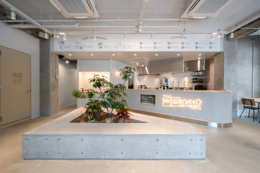 受付となる36ラウンジは2Fにあります。グループでご利用の際も安心して待ち合わせることができるほか、併設されたキッチンでは、サウナ後のお楽しみになるサ飯を多数用意してお迎えしています。私たちの一番のオススメである”36釜飯”は、山側らしい山菜だけでなく海の幸も揃え多彩なバリエーションが楽しめるほか、“ととのい”の後に沁みる美味しい自慢のビールもご用意しております。
