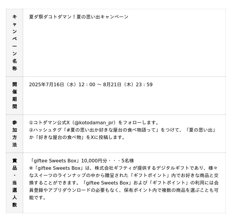 ・「夏ダ祭2025」キャンペーン情報:https://kotodaman.jp/info/detail/080621cedujbozZT.html