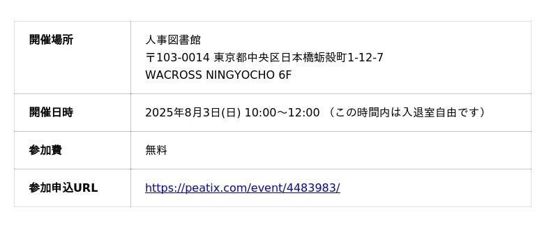 株式会社Trustyyle(本社:東京都中央区・代表取締役:吉田洋介)は、運営するコミュニティ「人事図書館」にて、2025年8月3日(日)に【ちょっと気になる…?】人事図書館大見学会!を開催します。