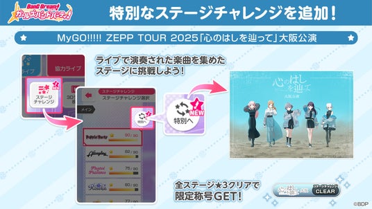 ■【新情報】ライブで演奏した楽曲を集めた特別ステージが、「ガルパ」ステージチャレンジ機能に追加決定