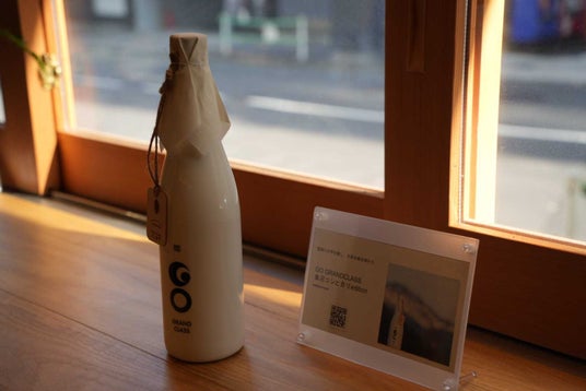 魚沼産コシヒカリを100%使用したプレミアム日本酒「郷(GO)GRANDCLASS 魚沼コシヒカリ Edition」の展示