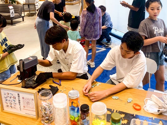 力いっぱいに!子どもたち自身がプラスチックに新しい命を吹き込みます