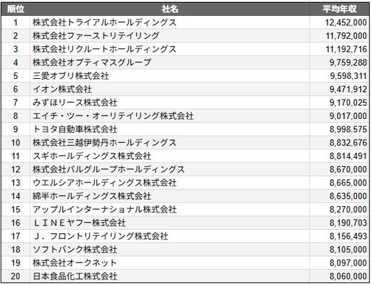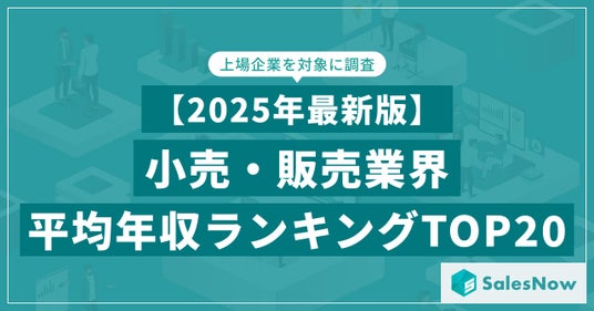 株式会社SalesNow(本社:東京都渋谷区、代表取締役:村岡功規、以下「当社」)は、国内540万社の企業情報を完全網羅した日本最大級のデータベース「SalesNow DB」より、上場企業における小売・販売業界の平均年収ランキングTOP20をお知らせします。