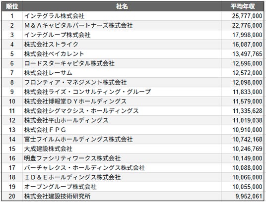 株式会社SalesNow(本社:東京都渋谷区、代表取締役:村岡功規、以下「当社」)は、国内540万社の企業情報を完全網羅した日本最大級のデータベース「SalesNow DB」より、上場企業におけるコンサル業界の平均年収ランキングTOP20をお知らせします。