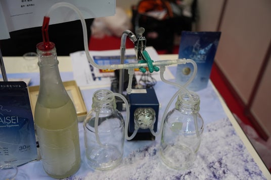 日本酒由来ナノ粒子『SAKESOME(サケソーム)』の抽出プロセスの展示