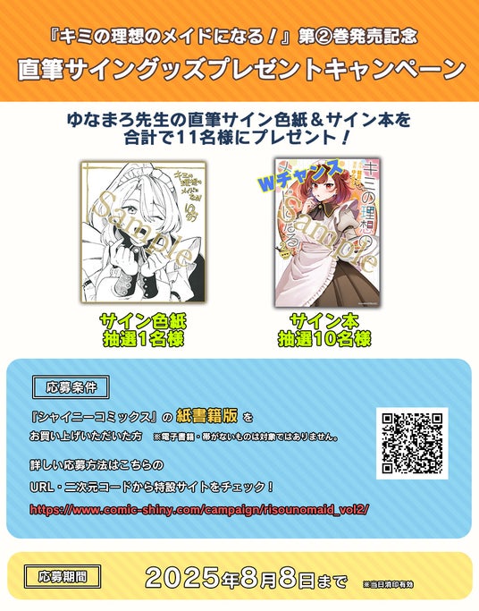 シャイニーコミックス『キミの理想のメイドになる!2』発売記念【ゆなまろ先生直筆サイングッズプレゼントキャンペーン】開催!