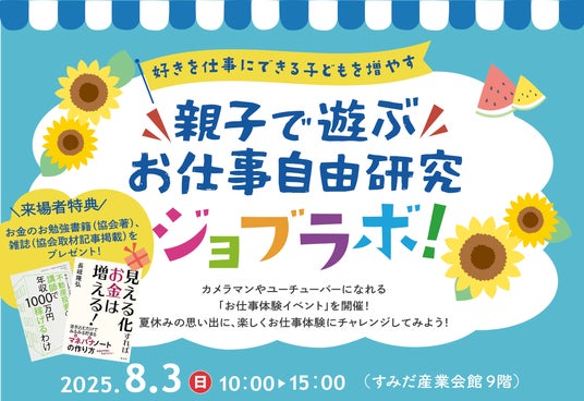 非営利型一般社団法人 不動産投資家育成協会(代表理事:長政 豊、以下「当協会」)は、2025年8月3日に、「親子で遊ぶお仕事自由研究【ジョブラボ!】~好きを仕事にできる子どもを増やす~」を、東京都墨田区で開催いたします。
